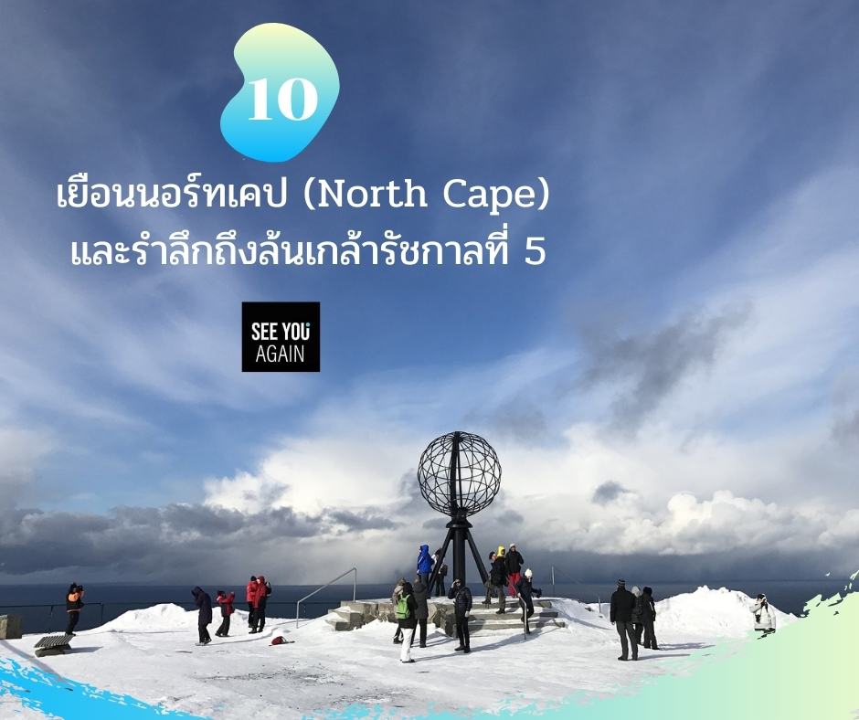 10 นอร์ทเคป จุดหมายที่บ่งบอกถึงตำแหน่งหน้าผาที่อยู่สูงที่สุดของดินแดนยุโรป และยังได้ชื่อว่าเป็นจุดชมพระอาทิตย์เที่ยงคืนที่สวยที่สุด หากความสำคัญในแง่จิตใจของคนไทย คือการได้รำลึกถึงล้นเก้ารัชกาลที่ 5 กษัตริย์นักเดินทาง ครั้งที่ท่านเสด็จประพาสยุโรปและได้ทรงเยือนนอร์ทเคป พร้อมทรงจารึกพระปรมาภิไธยย่อ จปร. ไว้เป็นที่ระลึกบนก้อนหิน ซึ่งทางรัฐบาลนอร์เวย์ ยังเก็บรักษาไว้เป็นอย่างดีภายในพิพิธภัณฑ์นอร์ทเคป