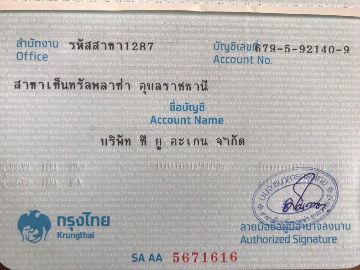 Bank Name : Krung Thai Bank Public Company Limited
