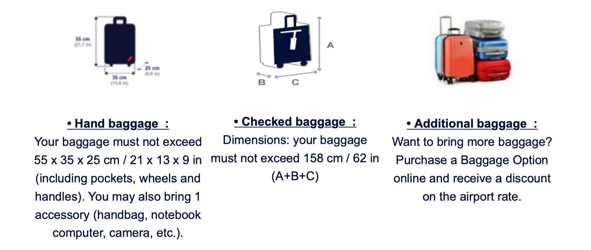 ในส่วนของการซื้อน้ำหนักกระเป๋าเพิ่ม กฏของสายการบิน ชั้นประหยัด สามารถซื้อได้สูงสุดเพิ่ม 1 ใบ เท่านั้น