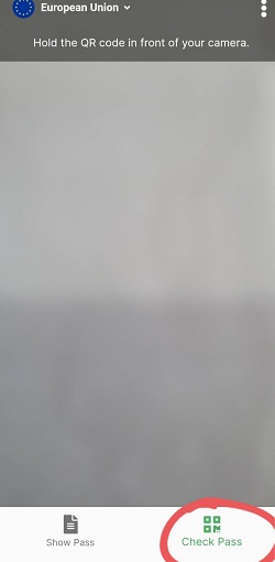 4.คลิกเมนู Check Pass เพื่อสแกน QR CODE วัคซีนของไทยเวอร์ชั่น EU