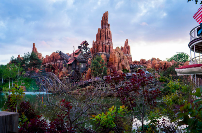 ในส่วนของ Big Thunder Mountain Railroad นั้นจะเป็นรถไฟเหาะ แต่ไม่ได้เป็นรถไฟเหาะที่หวาดเสียวมากนัก จะมีโซนที่เข้าไปในที่มืดๆและไต่ตามภูเขาหิน ซึ่งเป็นฉากหลังของโซนและ Big Thunder Mountain Railroad ที่ดิสนีย์แลนด์ ปารีสเป็นที่เดียวที่ได้ขึ้นไปวนที่เกาะกลางน้ำ