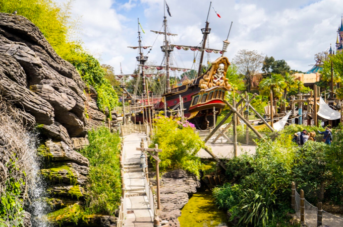 เครื่องเล่นที่โดดเด่นของ Adventureland คือ Pirates of the Caribbean