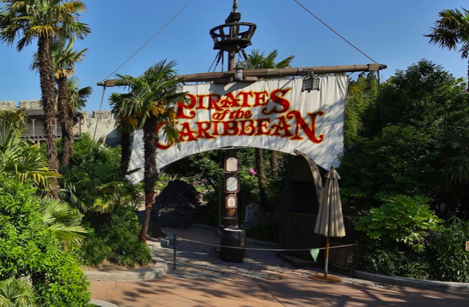 Pirates of the Caribbean เป็นเครื่องเล่นล่องไปบนน้ำ และมีห้องมืด จะมีจังหวะตกน้ำ มีการเล่าเรื่องต่างๆและมีหุ่นกัปตันแจ็ค สแปโรว์