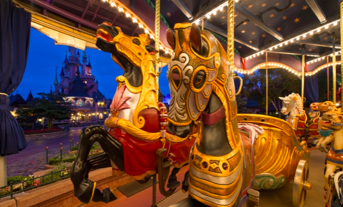 นอกจากนี้ยังมีเครื่องเล่นแนวม้าหมุน เช่น Lancelot’s Carousel, Dumbo the Flying Elephant และมีถ้วยน้ำชาให้นั่งเหมือนกับม้าหมุน ซึ่งเรียกว่า Mad Hatter’s Tea Cups
