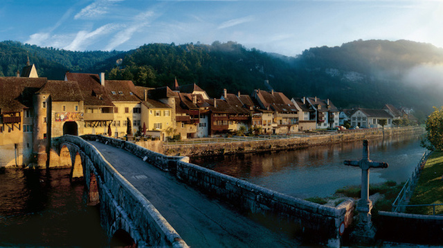 เรารอรับท่านที่สนามบิน Zurich Airport ตามเวลากำหนด พาท่านออกเดินทางสู่เมือง Saint-Ursanne ระยะทาง 219 กิโลเมตร ใช้เวลาเดินทาง 3 ชั่วโมงถึงเมือง Saint-Ursanne ซึ่งเป็นเมืองชายแดนแสนสงบ อยู่ระหว่างสวิตเซอร์แลนด์กับฝรั่งเศส เป็นเพชรเม็ดงามของ Jura region ที่ซ่อนตัวอยู่อย่างสงบเสงี่ยม เป็นเมืองเล็ก ๆ ที่มีแม่น้ำ Doubs ตื้น ๆ ไหลผ่านเมือง