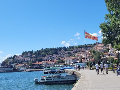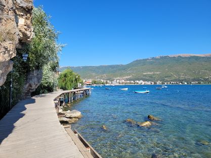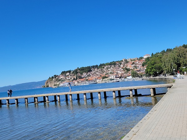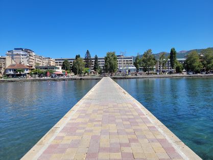 ทางเดินหน้าทะเลสาบ Ohrid เพื่อเดินตรงไปยังเขตเมือง