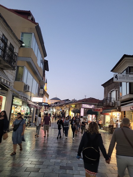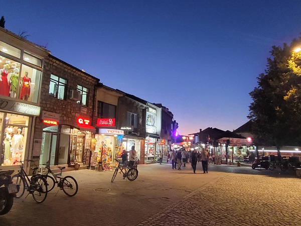 เมือง Ohrid ในเขตเมืองหรือเขตที่พักอาศัยมีโซนที่สามารถเดินเที่ยวช้อปปิ้งได้ทั้งกลางวันและกลางคืน เพราะร้านค้าในยามค่ำคืนยังคงเปิด ทำให้บรรยากาศในยามค่ำคืนราวกับคุณกำลังเดินเที่ยวไนท์บาร์ซ่า ที่รายล้อมด้วยร้านอาหาร ผับ บาร์ ทำให้มีสีสันในตอนกลางคืนสนุกสำหรับนักท่องเที่ยว