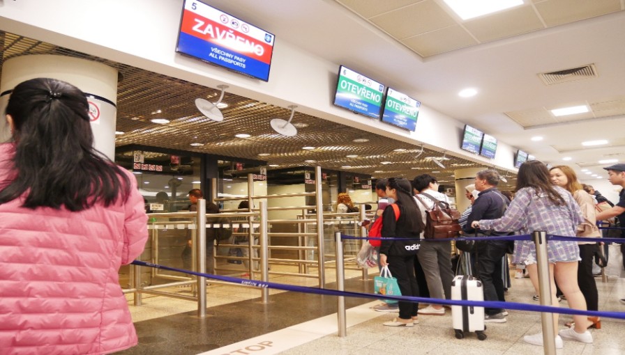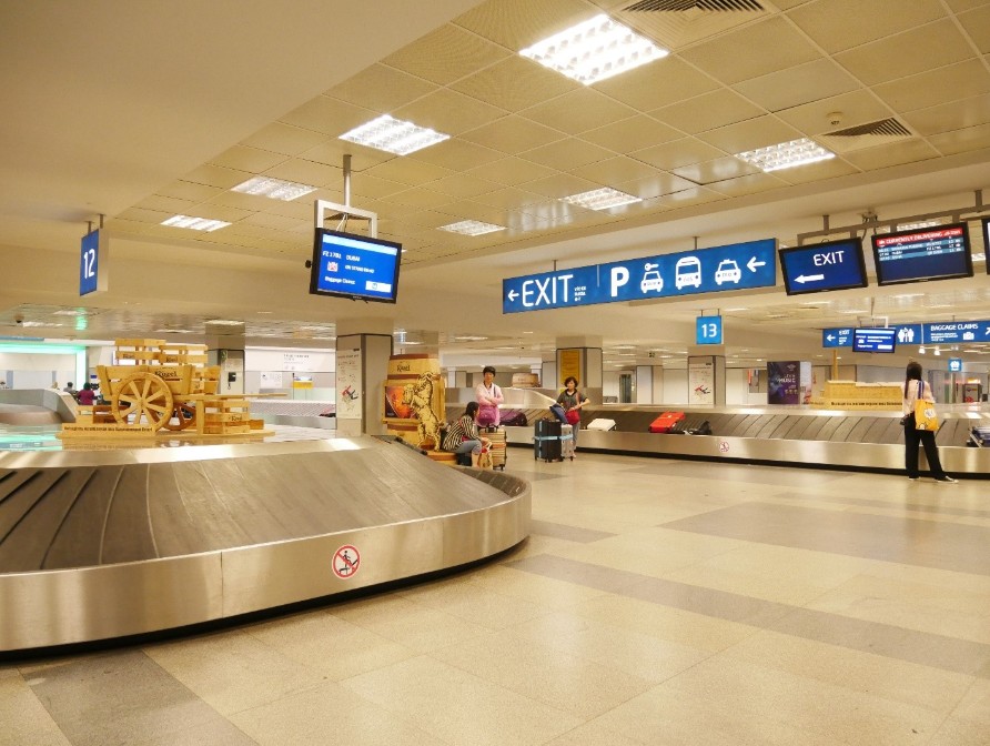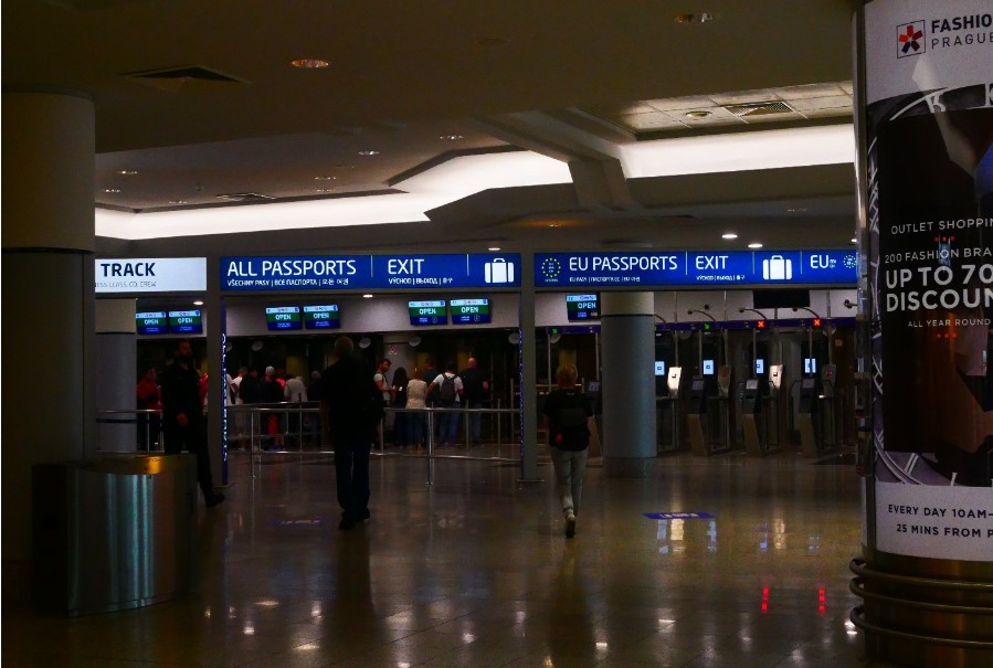 หากเดินทางมาจากไทยสิ่งแรกที่จะเห็นคือป้ายให้รับกระเป๋าเหมือนกันสนามบินทั่วๆไป แต่ก่อนหน้านั้นจะมีด่านตรวจคนเข้าเมืองที่แยกช่องระหว่างคนที่ถือพาสปอร์ตของสหภาพยุโรป กับคนที่ถือวีซ่าอื่นๆ รอคิวไม่นาน เจ้าหน้าจะขอดูพาสปอร์ตเพื่อตรวจสอบวีซ่า ปั้มตราประทับ กดไฟเขียวแล้วก็เปิดที่กั้นให้ออกไปเอากระเป๋าได้