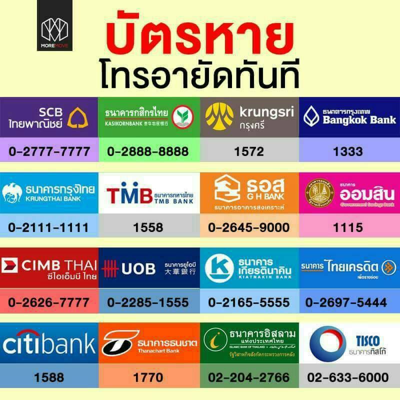 - ถ่ายหน้าบัตรเครดิตทุกใบ พร้อมเบอร์แจ้งอายัด เผื่อหายค่ะ