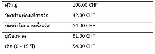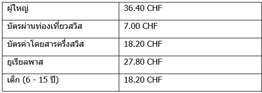 สายจาก Schilthorn ทุกชั่วโมง xx.03 และ xx.33 ชั่วโมง เที่ยวสุดท้าย 17.55 น.