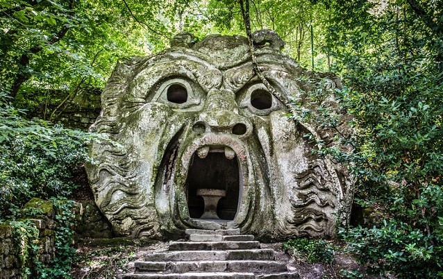 รู้จักกันในอีกชื่อหนึ่งว่า Park of Monsters หรือสวนปีศาจ สวนแห่งนี้สร้างขึ้นในศตวรรษที่ 16 โดยสถาปนิกท่านหนึ่งที่ได้แกะสลักรูปสัตว์ในตำนาน รวมถึงประติมากรรมที่แปลกประหลาดและน่ากลัวพื่อเป็นเครื่องระบายความโศกเศร้าหลังจากสูญเสียภรรยา จารึกในสวนกล่าวว่าประติมากรรมนี้ถูกออกแบบเพียงเพื่อ "ปลดปล่อยหัวใจให้เป็นอิสระ" ด้วยการออกแบบอย่างไม่มีแบบแผนทำให้ปสถานที่แห่งนี้มีเสน่ห์อย่างน่าประหลาด