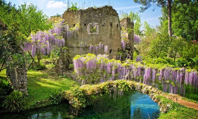 ครั้งหนึ่งเมือง Ninfa เคยเป็นเมืองในยุคกลางที่คึกคัก แต่ชาวบ้านทิ้งเมืองแห่งนี้ไปหลังจาก 2-3 ทศวรรษที่ยากลำบาก นำมาซึ่งการต่อสู้ภายในและการระบาดของโรคมาลาเรีย ในปี 1900 สถานที่แห่งนี้ได้รับการค้นพบและเปลี่ยนโฉมใหม่อย่างพิถีพิถัน เพื่อให้นักท่องเที่ยวสามารถชื่นชมพรรณไม้ที่ล้อมรอบด้วยซากปรักหักพังและข้ามคูเมืองเพื่อสำรวจภายในของปราสาทได้ คุณจะต้องจองทัวร์ล่วงหน้าเพื่อชมสวนแห่งนี้เพราะเวลาเปิดทำการค่อนข้างจำกัด แต่ก็คุ้มค่าถ้าได้ไปเยือน