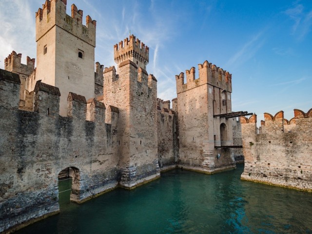 ปราสาทสมัยศตวรรษที่ 12 ซึ่งสร้างขึ้นครั้งแรกในฐานะป้อมปราการสามารถมองเห็นทิวทัศน์ที่สวยงามของทะเลสาบการ์ดาในขณะที่ตัวปราสาทเองก็งดงามเหมือนภาพวาด สะพานชักที่โอ่อ่าของป้อมปราการทะเลสาบยังทำหน้าที่เป็นทางเข้าเมือง Sirmione อีกด้วย