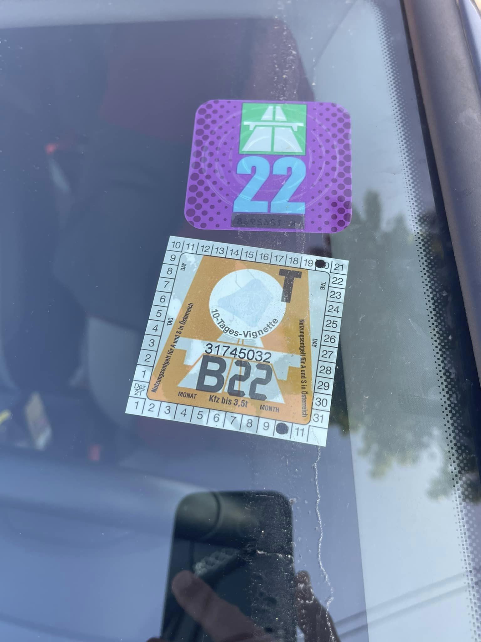 ออสเตรีย ใช้ Vignette ( Sticker ) ติดหน้ารถ สามารถหาซื้อได้ ตามปั๊มน้ำมันบนน toll way ตรงชายแดนฝั่งออสเตรีย ราคาถูกสุดคือใช้ได้ 10 วัน 9.60 € มีทั้งแบบ เดือนนึง และนานขึ้น แน่นอนราคาก็แพงขึ้น ปัจจุบันออสเตรียสามารถเข้าเวปซื้อแบบออนไลน์ ( แค่คีย์เลขทะเบียนจ่ายตังก็จบละ ) แต่แบบนี้กว่าจะเริ่มใช้ได้ต้องรอ 18 วัน ประเทศนี้ค่าใช้จ่ายเรื่องค่าเข้าอุโมงค์แพงมาก ( ค่าเข้าอุโมงค์จะเก็บแยกจาก ค่า toll ) มีอุโมงค์เต็มไปหมดเกือบทุกแห่งเสียตัง สามารถแตะบัตรจ่ายหรือจ่ายเงินสดได้ตาม Toll gate ก่อนเข้าอุโมงค์ทุกครั้ง