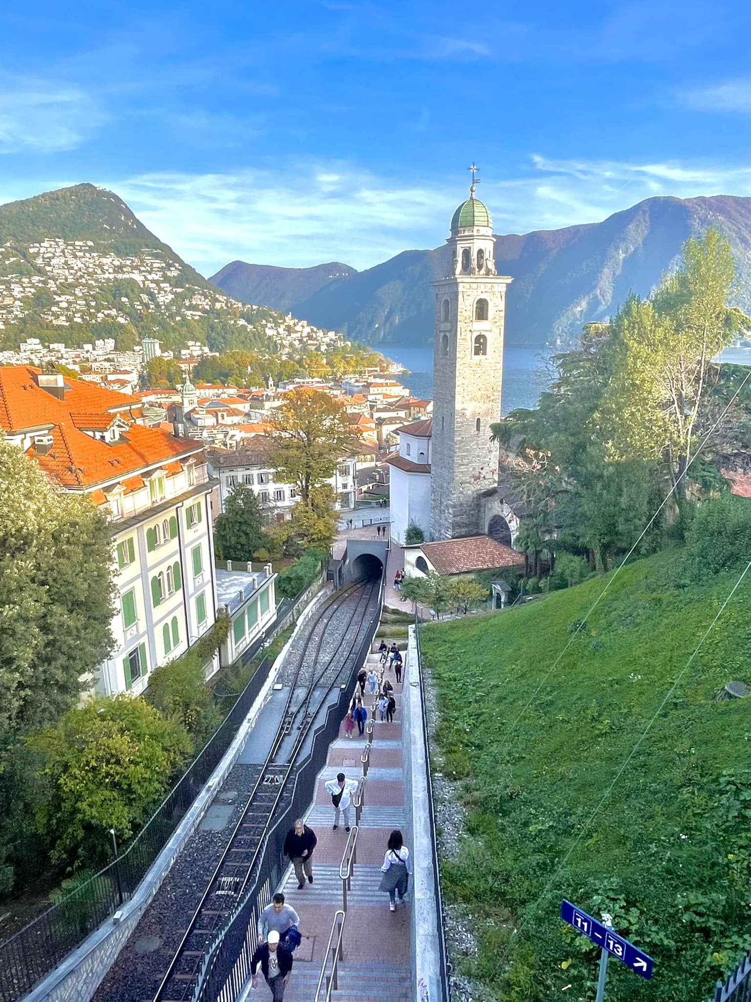 เมืองนี้พูดอิตาเลี่ยน บ้านเรือนสไตล์อิตาลีทางเหนือแต่ดูเป็นระเบียบแบบสวิส คนมานี่คือเดินชมเมืองรอบทะเลสาบ Lugano หรือนั่งเรือเที่ยว ( มีเรือเมลวิ่งไปหลายจุดในทะเลสาบ โดยเฉพาะจุดที่จะขึ้น aerial tram ที่จะไปจุดชมวิวบนเขา มีอยู่สองสามจุด ถ้าไม่อยากเสียตัง นี่คือสวิสมีทางเดินขึ้นไปได้ทุกจุด )