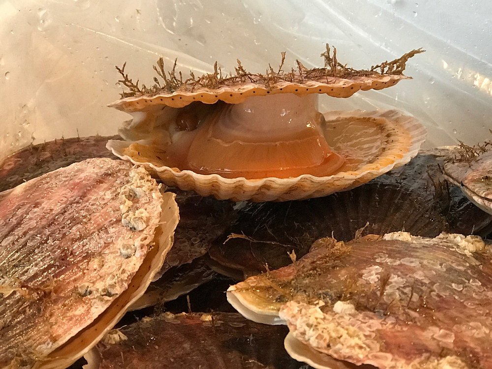 6. หอยเชลล์ย่าง (Hotate) หอยเชลล์สดย่างบนเตาถ่าน ราดด้วยซอสโชยุที่ให้รสเค็มหวาน แนะนำว่าควรสั่งแบบปรุงสดจากร้านริมถนนในตลาด