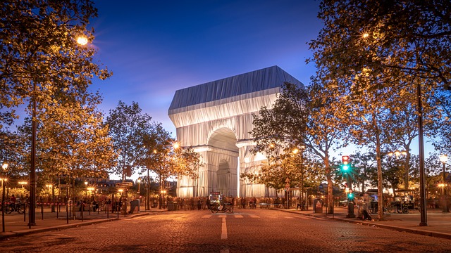 3. ถ่ายภาพประตูชัย มุมจากวงเวียน Place Charles de Gaulle ให้ภาพประตูชัยในมิติที่งดงาม ในช่วงกลางคืน ประตูชัยถูกประดับด้วยไฟ เพิ่มความสวยงามและโรแมนติก