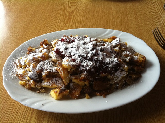 3. Kaiserschmarrn แพนเค้กแบบหนานุ่ม ฉีกเป็นชิ้นเล็กๆ โรยน้ำตาลไอซิ่ง ทานคู่กับผลไม้เชื่อมหรือแยม รสหวานนุ่มละมุน