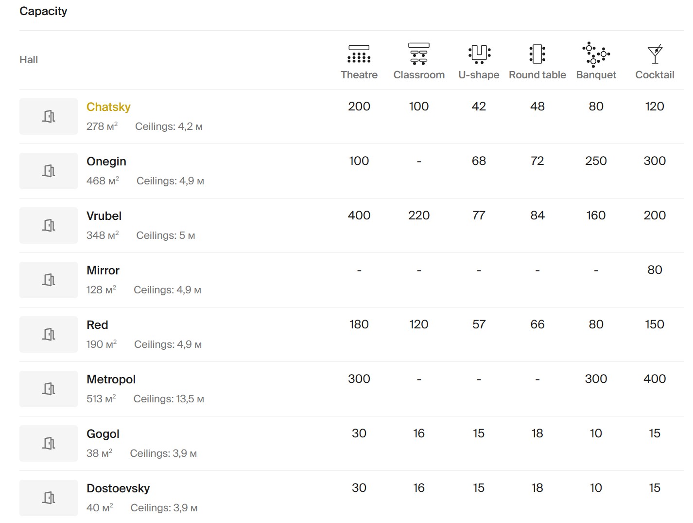 ด้วยประสบการณ์อันยาวนานและมาตรฐานการบริการระดับสูง Metropol Hotel จึงเป็นตัวเลือกที่สมบูรณ์แบบสำหรับการจัดงานในบรรยากาศที่หรูหรา มีเรื่องราว และเปี่ยมด้วยศักดิ์ศรีของประวัติศาสตร์รัสเซีย