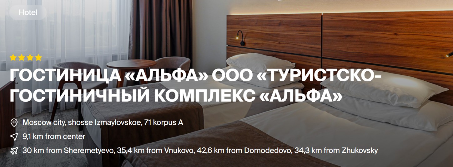 ด้วยขนาดโรงแรมที่ใหญ่ บริการครบวงจร และทำเลที่เดินทางสะดวก Hotel “Alfa” 4 ดาว Izmailovo จึงเป็นหนึ่งในโรงแรมที่ตอบโจทย์ทั้งกลุ่มนักธุรกิจ กลุ่มทัวร์ ครอบครัว และผู้ที่ต้องการที่พักคุณภาพในกรุงมอสโกอย่างแท้จริง