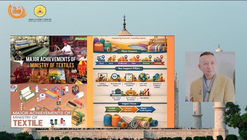 การเสวนาดำเนินรายการโดย ผศ.ดร.ปิยณัฐ สร้อยคำ ผู้ช่วยอธิการบดีฝ่ายการตลาด และผู้อำนวยการศูนย์ศึกษาอินเดีย