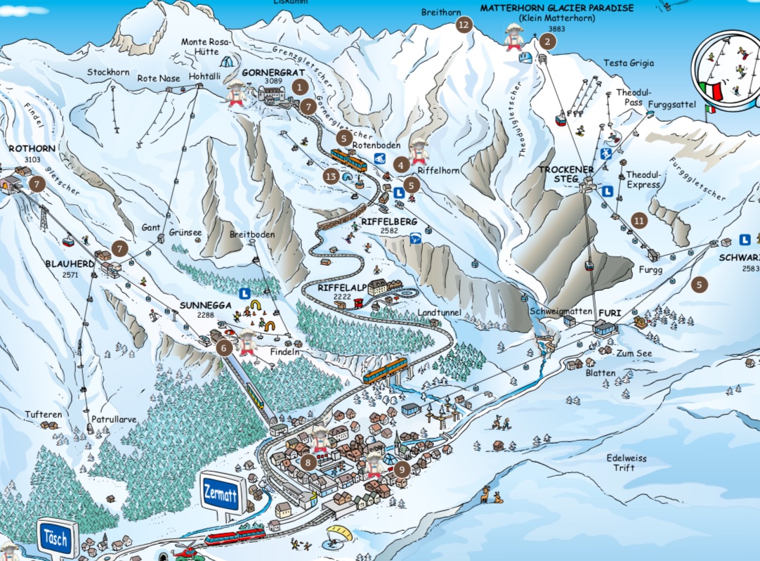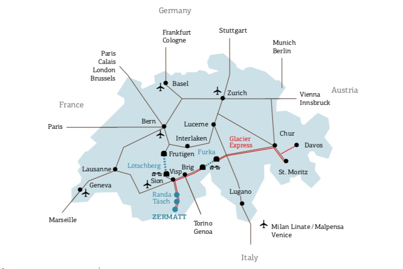 วิธีเที่ยวและแผนที่เมือง Zermatt
