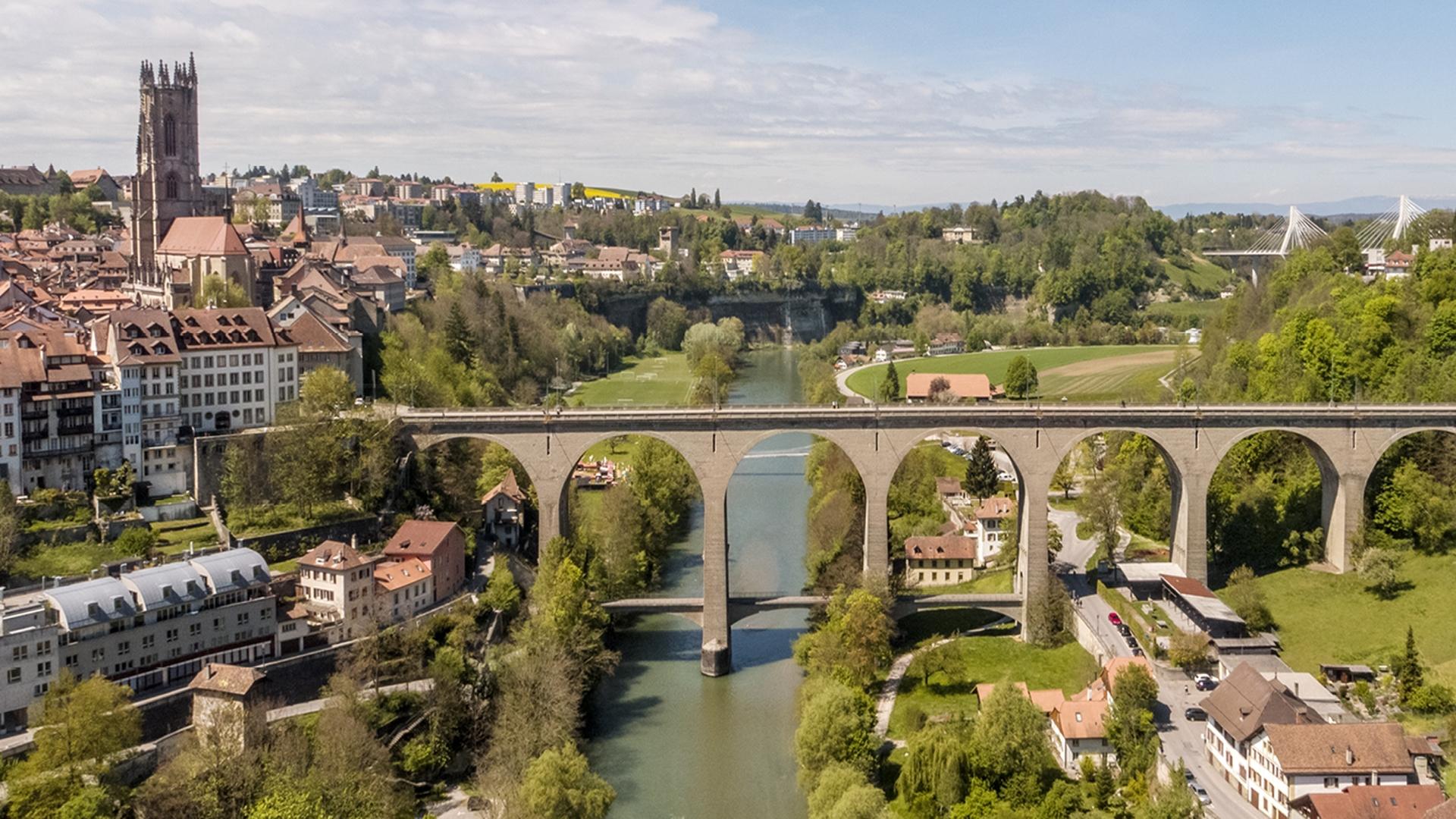 Fribourgเป็นเมืองเก่าแก่ของสวิตเซอร์แลนด์ ขึ้นชื่อว่าเป็นเมืองแห่งปราสาท จุดเด่นของเมืองนี้คือ Zaehringen Bridge เป็นสะพานสูงสำหรับข้ามแม่น้ำซารีน