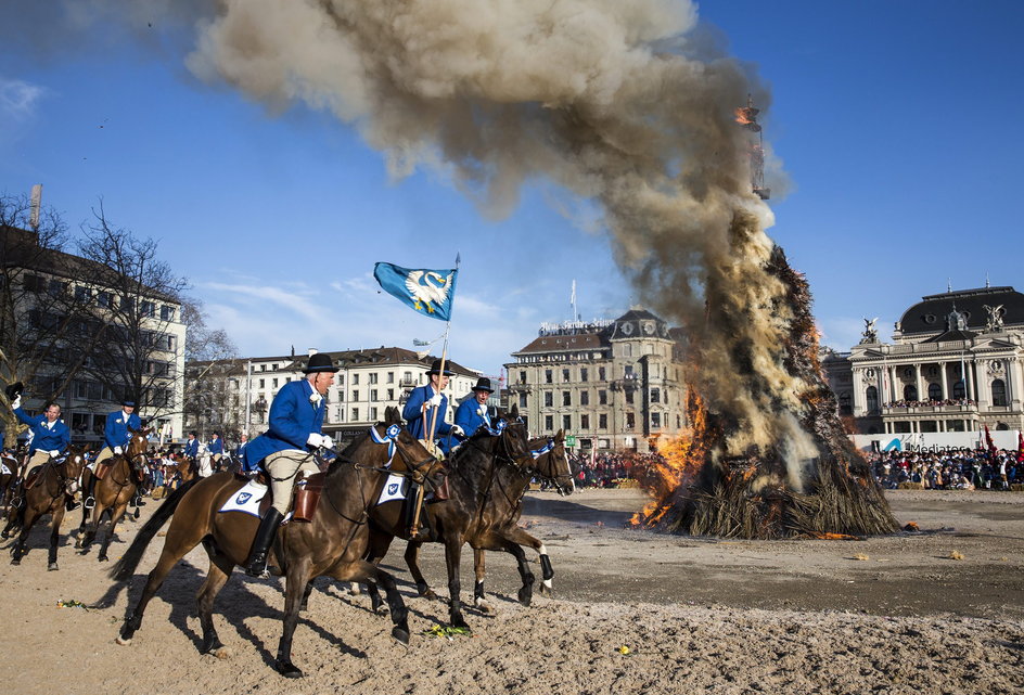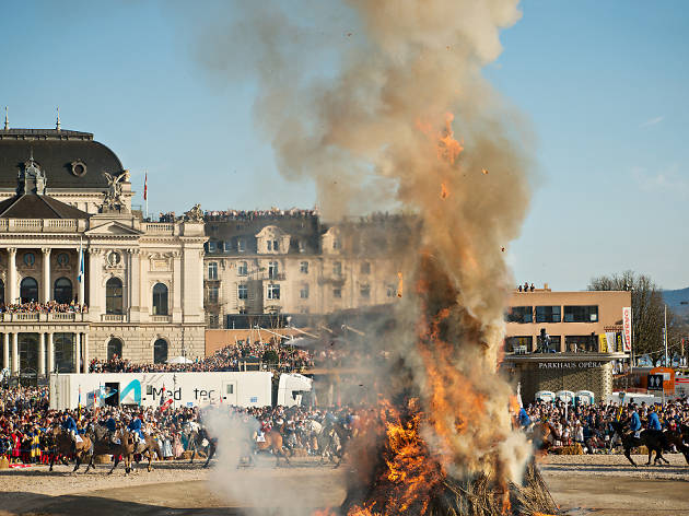 โดยผู้ร่วมงานจะสวมเสื้อผ้าโบราณของแต่ละภาค ประกอบด้วยขบวนม้าและเล่นดนตรีที่คนสวิสเรียกกันว่า SECHSELAUTEN หมายถึงการตีระฆังบอกเวลาตอน 6 โมงเย็นโดยจุดเด่นของเทศกาลนี้คือ มีการเผาเบิ๊ก (B??gg) ซึ่งเป็นหุ่น เพื่อใช้ในการเสี่ยงทายว่า การระเบิดและการเผาไหม้ใช้ระยะเวลานานเท่าไร เป็นการทำนายว่าฤดูร้อนนั้นในปีนั้นจะเป็นอย่างไรนั่นเอง