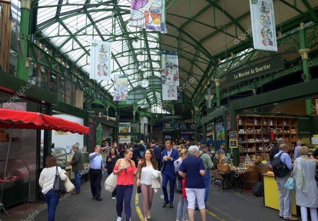 นำท่านเดินเล่นที่ Borough Market ตลาดขาย Seafood สดๆที่มีอายุเก่าแก่ถึง 1,000 ปี ลักษณะของตลาดก็จะมีของทั่วๆไปขาย แต่ส่วนใหญ่จะเป็นอาหารสด ไม่ว่าจะเป็นผักผลไม้ เค้ก ชีส เครื่องดื่มต่างๆ ราคาอาหารจะถูกว่าร้านอาหารมากๆ ที่นี่จะคึกคักไปด้วยนักท่องเที่ยวและคนท้องถิ่น ผู้เดินทางสามารถเลือกได้ว่าจะทานมื้อเที่ยวที่นี่หรือที่ร้านอาหาร